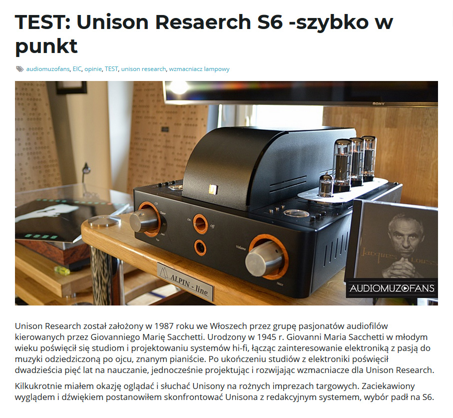 Pomyślny test wzmacniacza S6 na portalu Audiomuzofans.