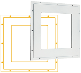 Szablon ten można przykręcić do kołków rozporowych lub legarów, a kabel głośnikowy zamocować do dołączonego uchwytu z tyłu. Po zakończeniu tynkowania i dekoracji uzyskuje się otwór o idealnych wymiarach, w którym można zamontować głośnik.