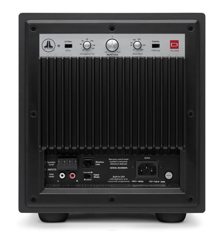Dzięki licznym funkcjom przetwarzania sygnału subwoofery aktywne Dominion® można z łatwością zintegrować z większością systemów audio. Sygnały dolnoprzepustowe są precyzyjnie prowadzone, dzięki wyrównaniu na linii zwrotnicy 24 dB / oktawę Linkwitz-Riley. Wbudowane elementy sterujące fazą i polaryzacją pomagają osiągnąć optymalne przejście akustyczne między subwooferem a głośnikami głównymi. Dostępne są elastyczne opcje wejściowe do przyjmowania sygnałów na poziomie liniowym lub na poziomie głośników. Podłącz system JLINK ™ TRX (sprzedawany osobno) do wbudowanego portu Wireless Link i ciesz się swobodą pozycjonowania Dominion® niemal w dowolnym miejscu, w odległości do 30 metrów od urządzenia źródłowego.