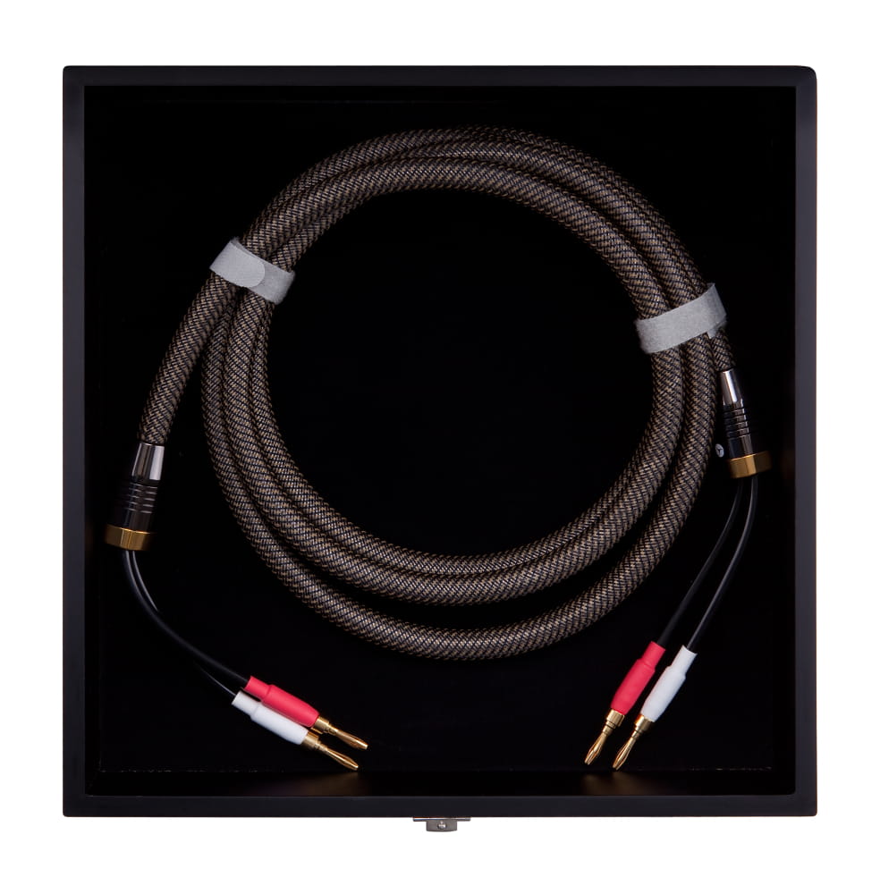 Przewód głośnikowy QuistCable High End LSC C dostępny jest w konfekcjonowanych odcinkach o długości 2.5m i 4m, wykończonych solidnymi wtykami bananowymi pozłacanymi 24 karatowym złotem i sprzedawane są pojedynczo zapakowane w ekskluzywną skrzynkę.