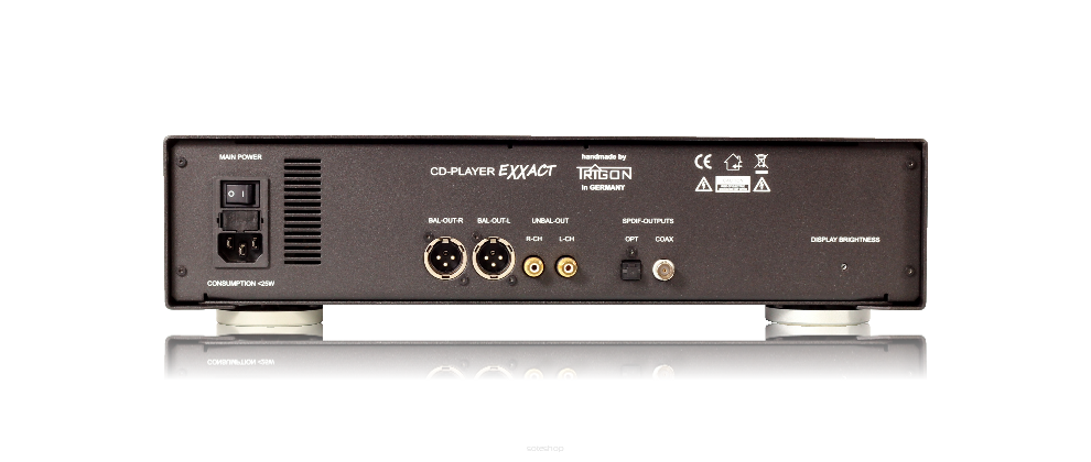 Projekt techniczny EXXACT CD skupia się na najlepszym możliwym rozwiązaniu dla wszystkich krytycznych dla dźwięku parametrów. Zacznij od początku bez kompromisów: Doskonały, czysty napęd wejściowy audio od Stream Unlimited, 24-bitowy przetwornik D/A z częstotliwością próbkowania 192 Khz i odpowiednio zaawansowanym stopniem wyjściowym tworzą precyzyjnie dostrojony zespół znakomitych komponentów. Aby komponenty te mogły wykorzystać swój potencjał brzmieniowy, są one optymalnie zasilane przez stabilny zasilacz impulsowy w połączeniu ze standardowym przewodem zasilającym Trigon Volt z czystej miedzi.